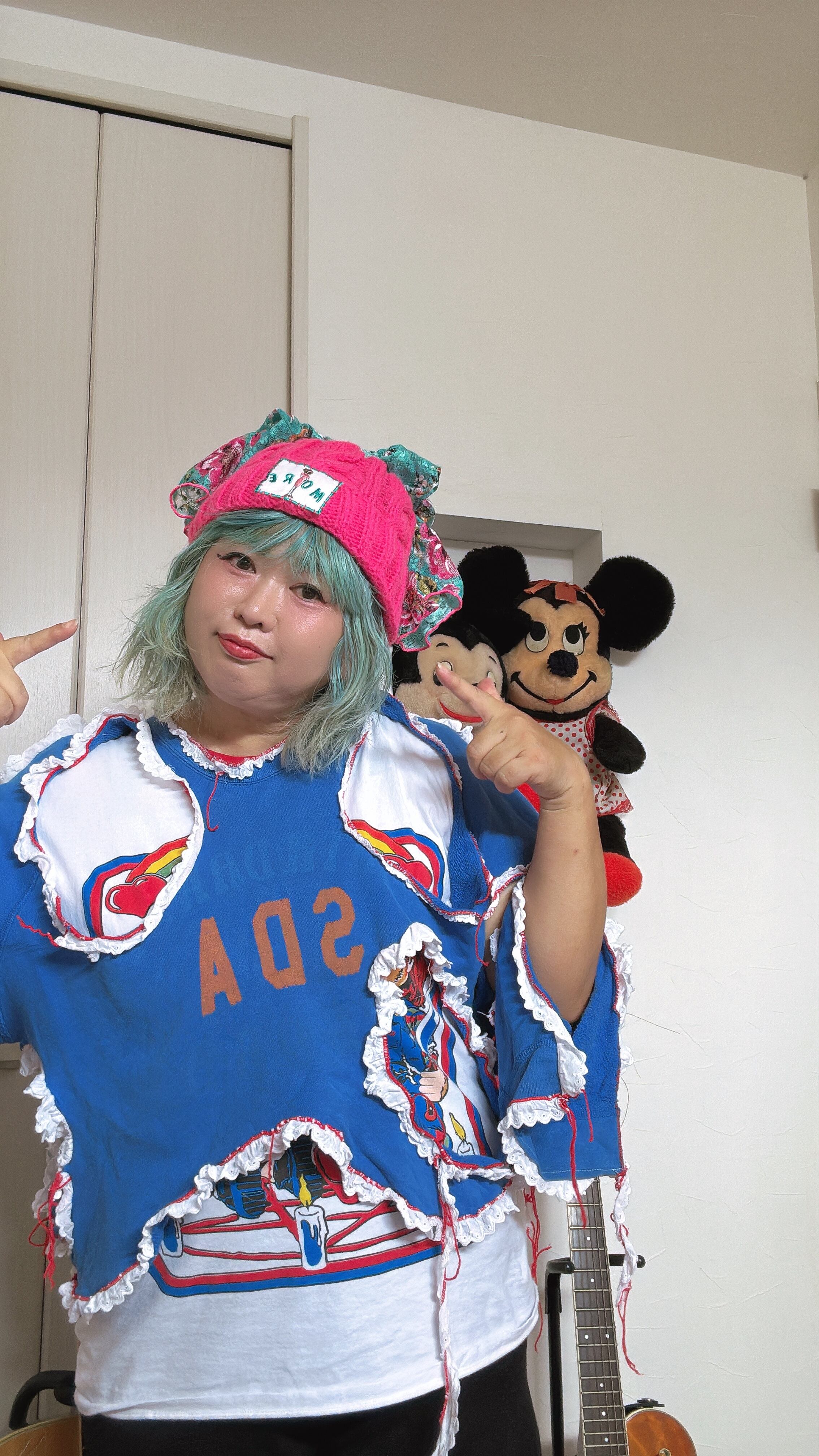 ピンク✖️グリーン花柄レースribbon KNIT cap