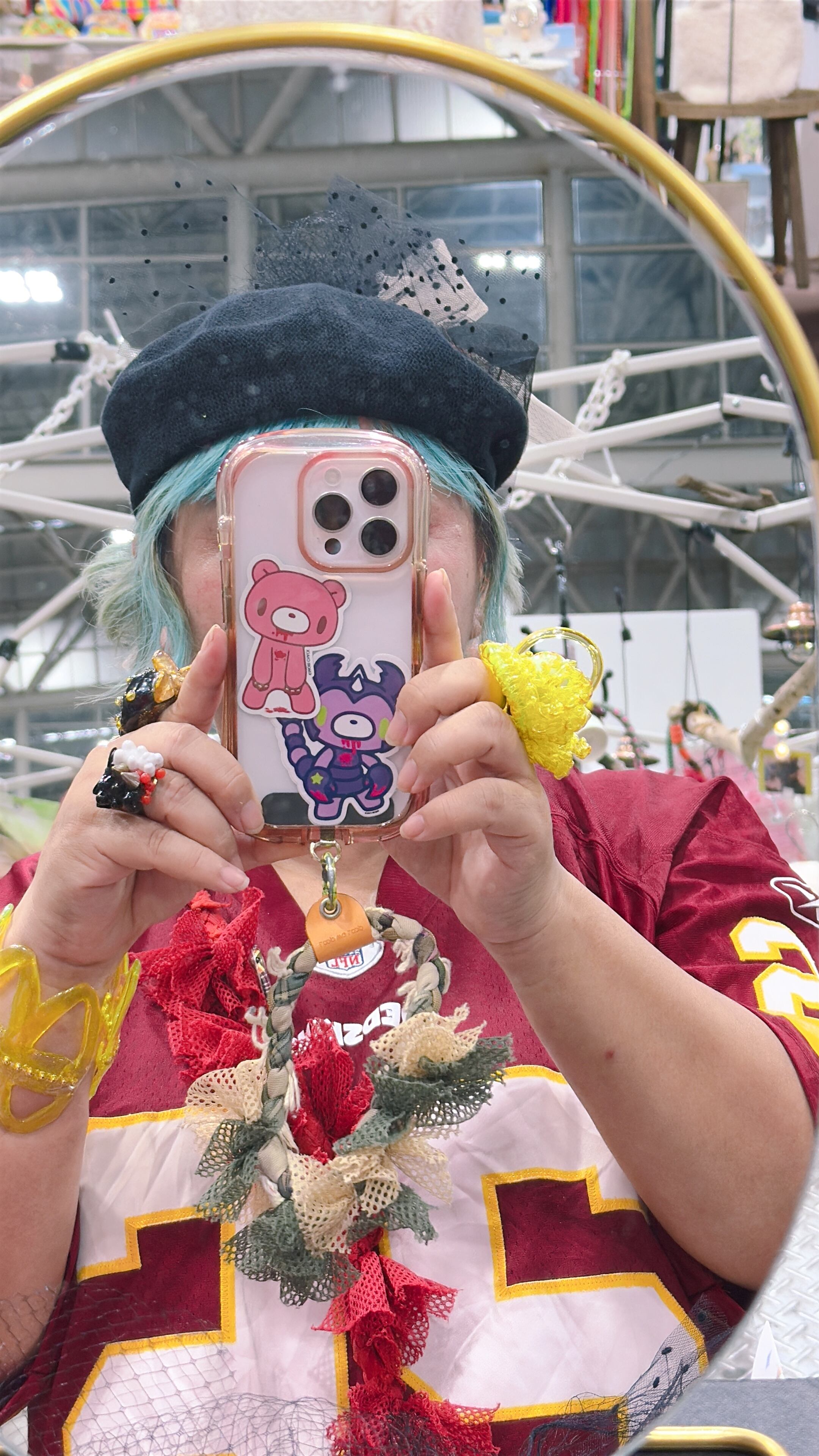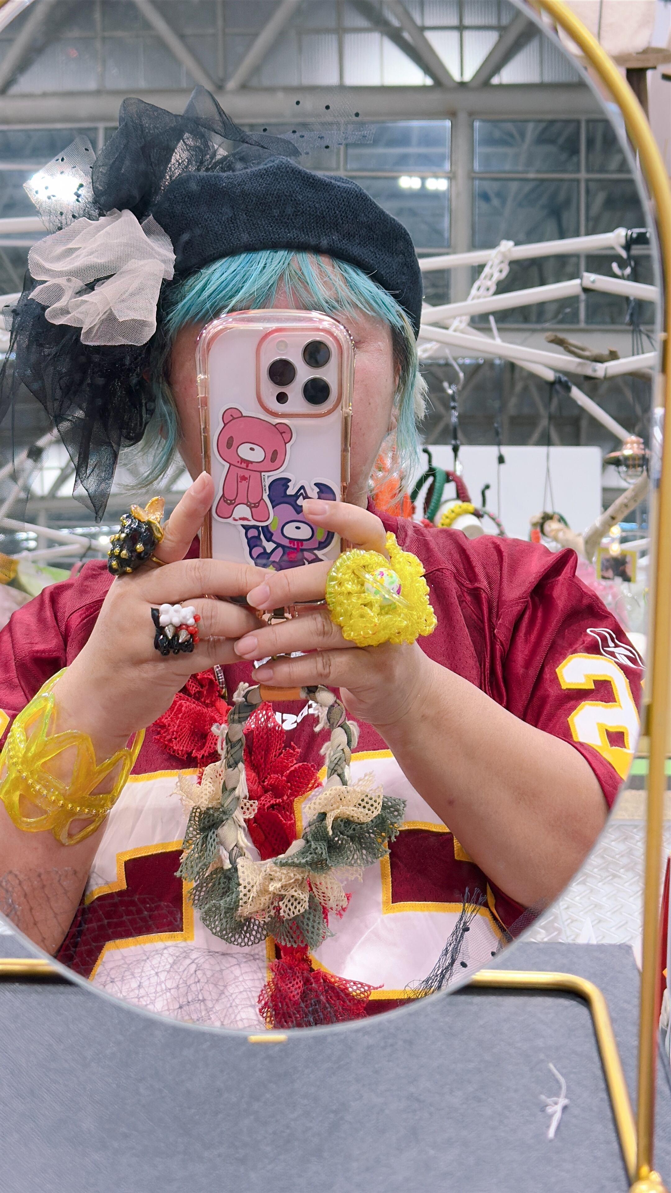 3種類の黒メッシュ、アイボリーチュール(upサイクル)と黒ドットチュールのリボンを装飾した