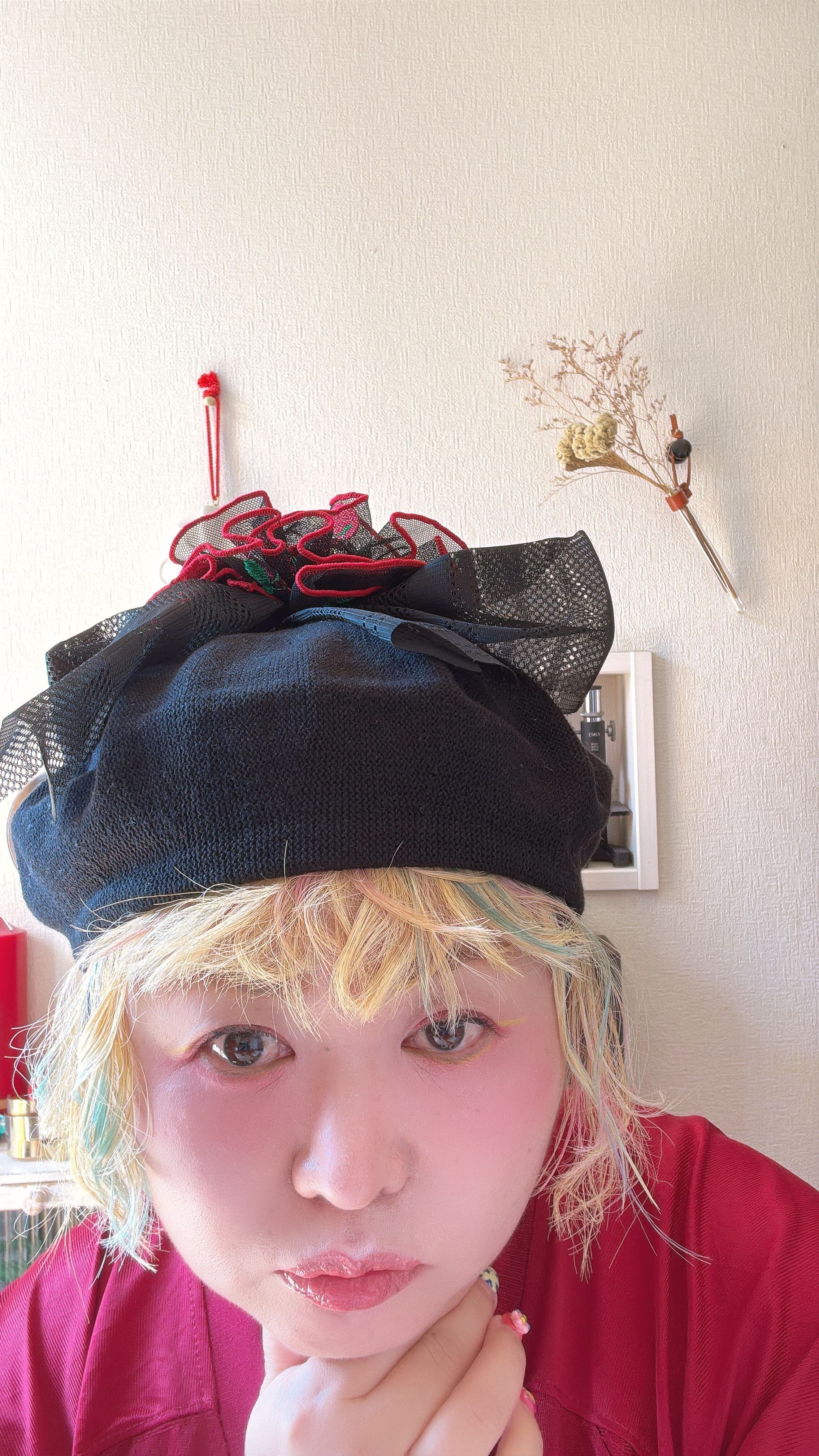チェリー柄のチュールのポンポンやribbonを装飾した