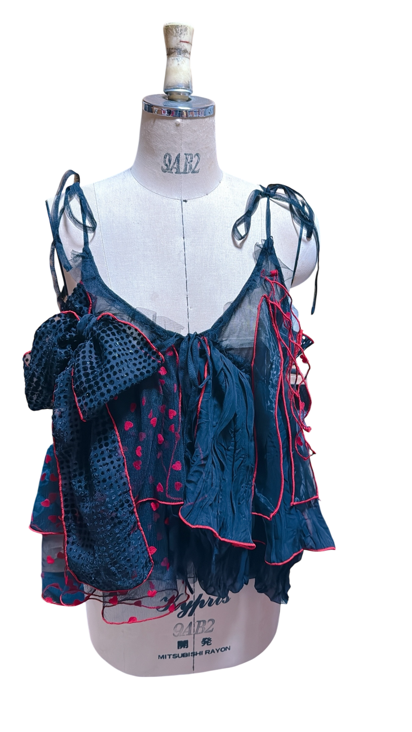 前見頃に二箇所 ribbonで結んで開閉出来ます