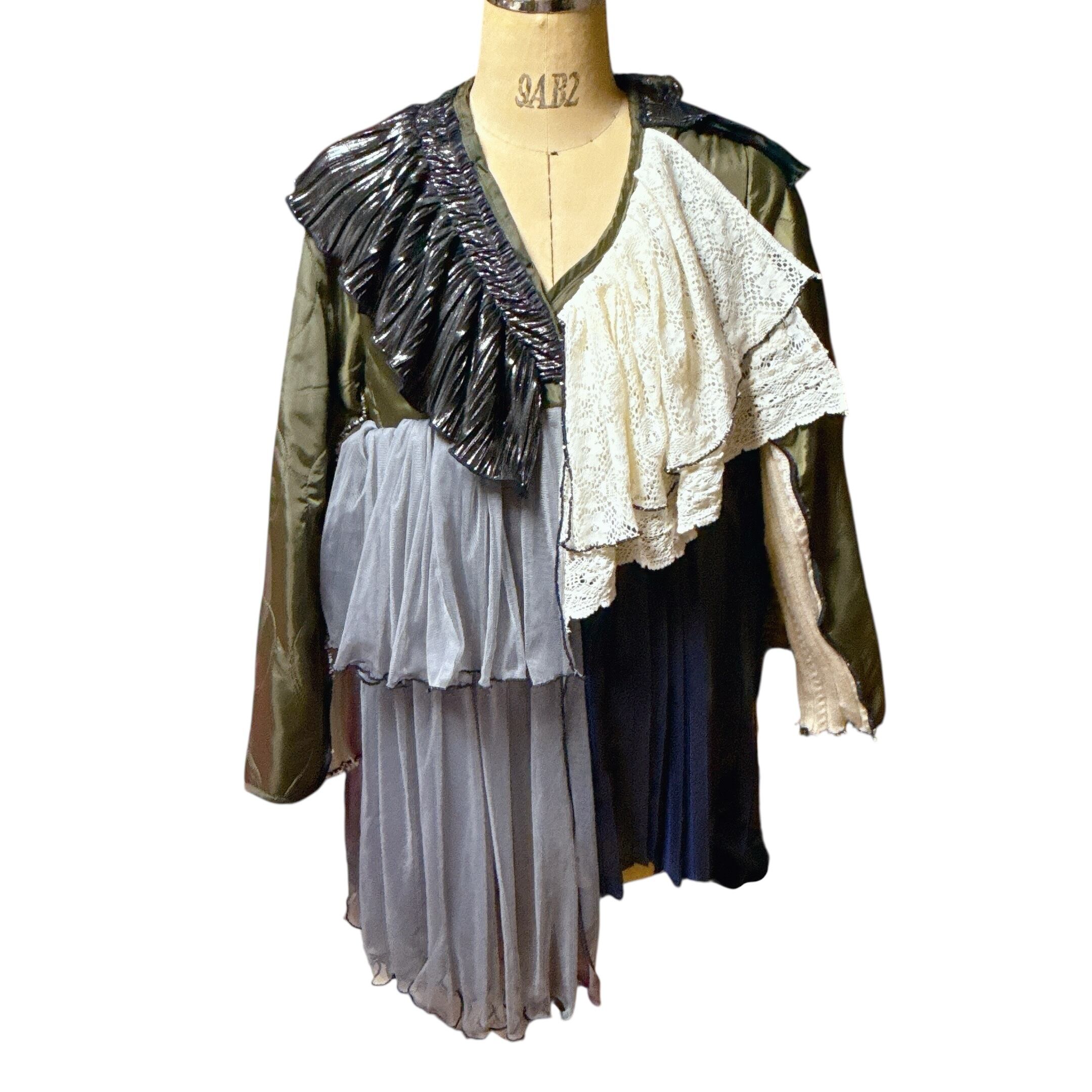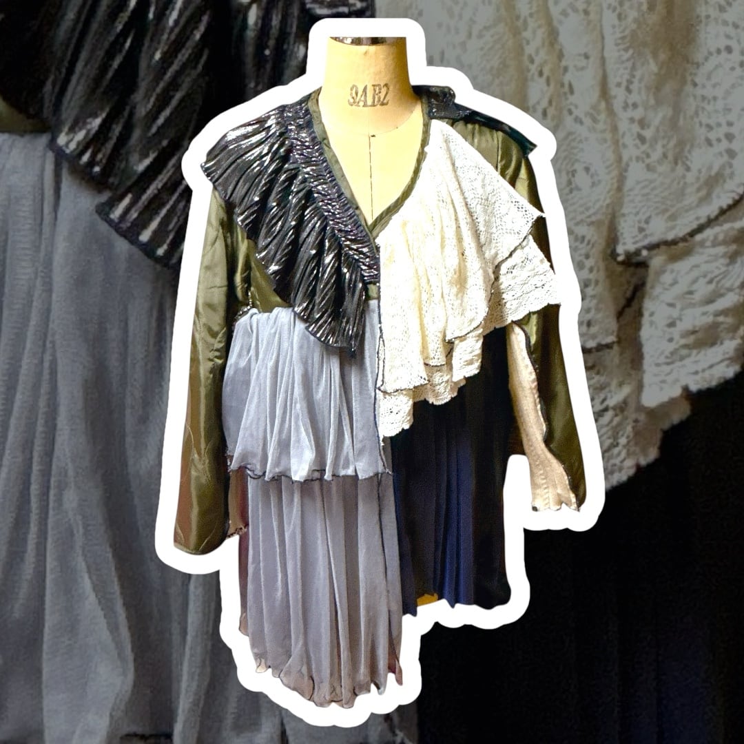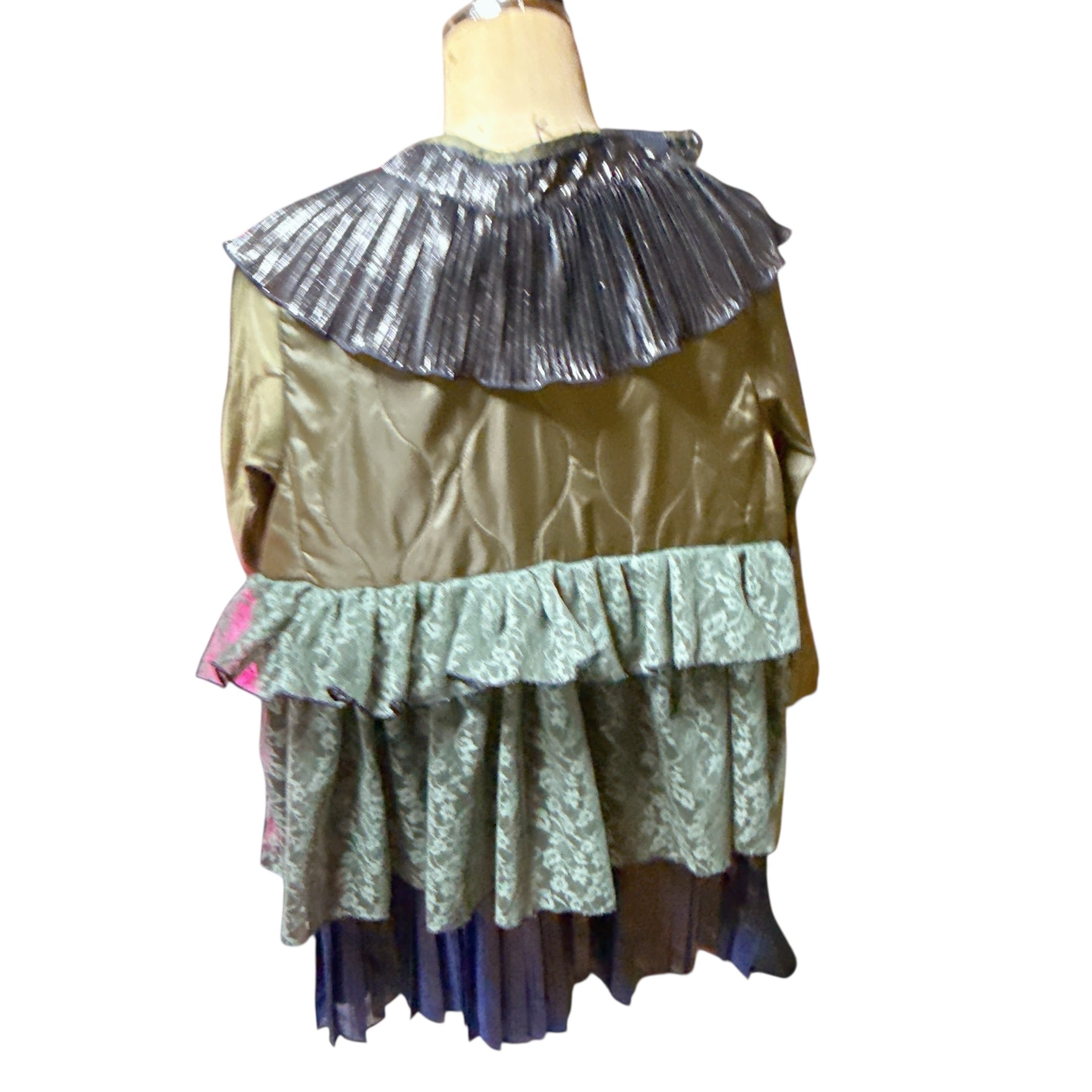 前見頃はグレーのチュールがティアードになっていて誰とも被らない一点もののアウターになります