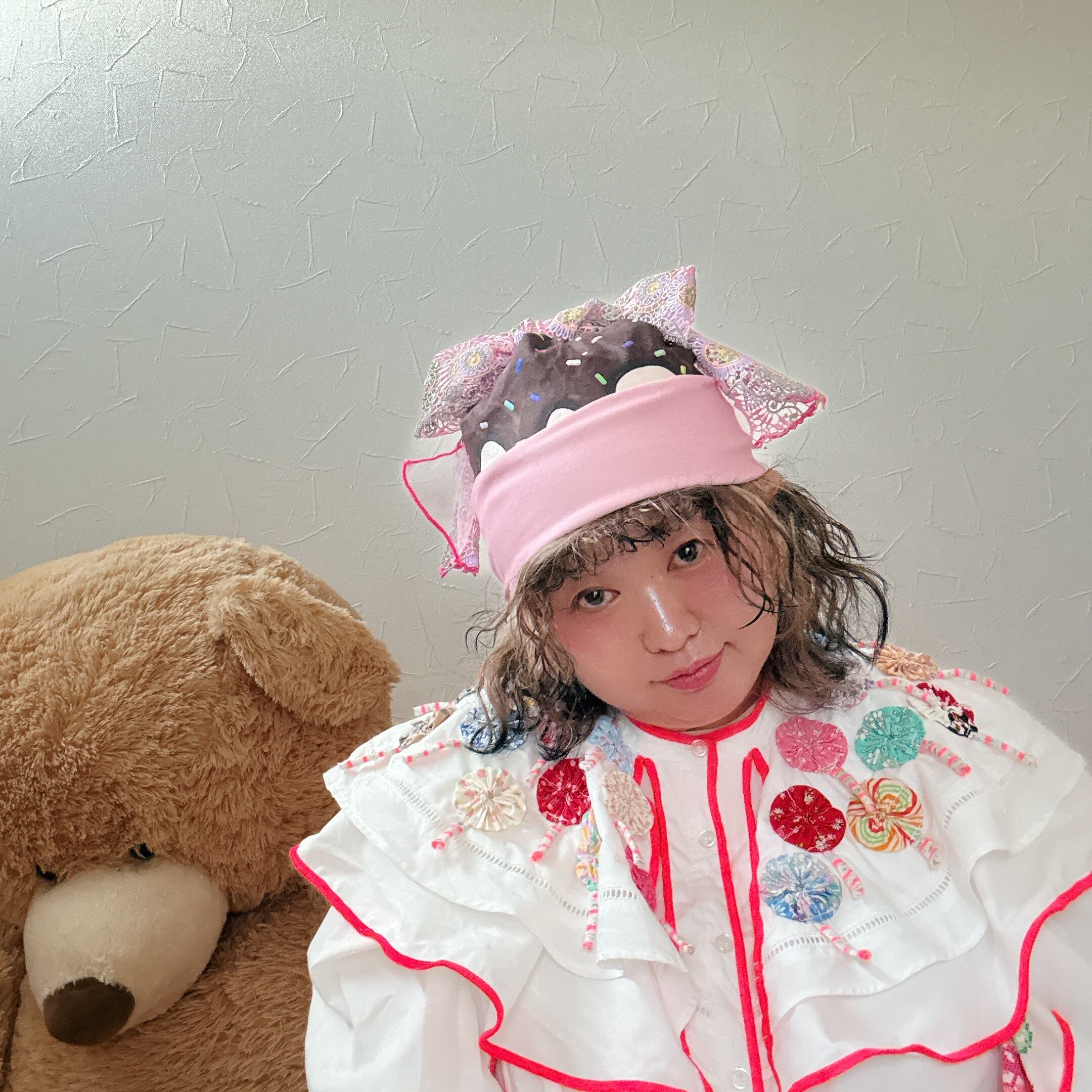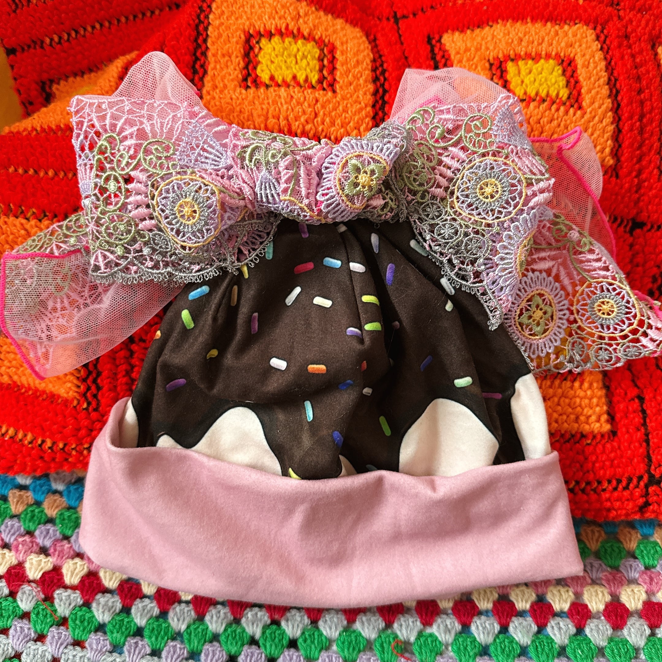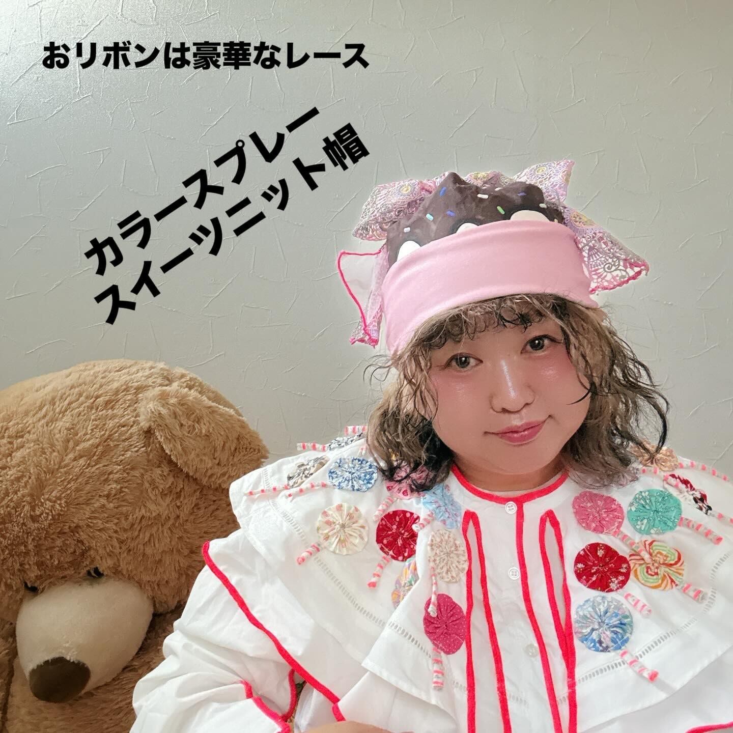 ケーキ柄の春夏ニット帽に