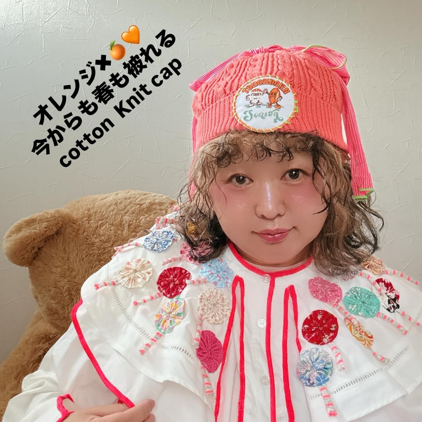 オレンジのcottonニット帽に