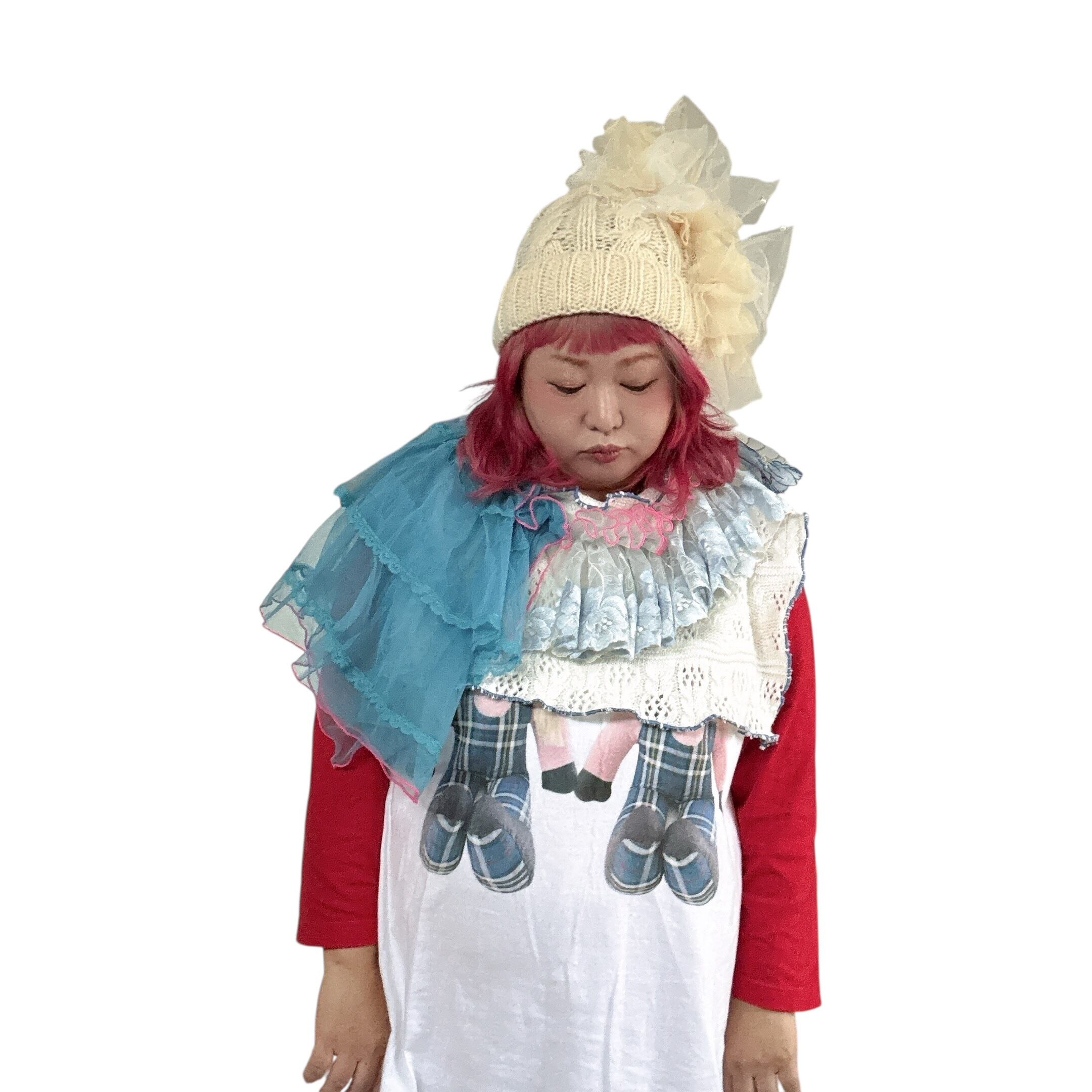 ホワイト3種の ribbon Knit cap