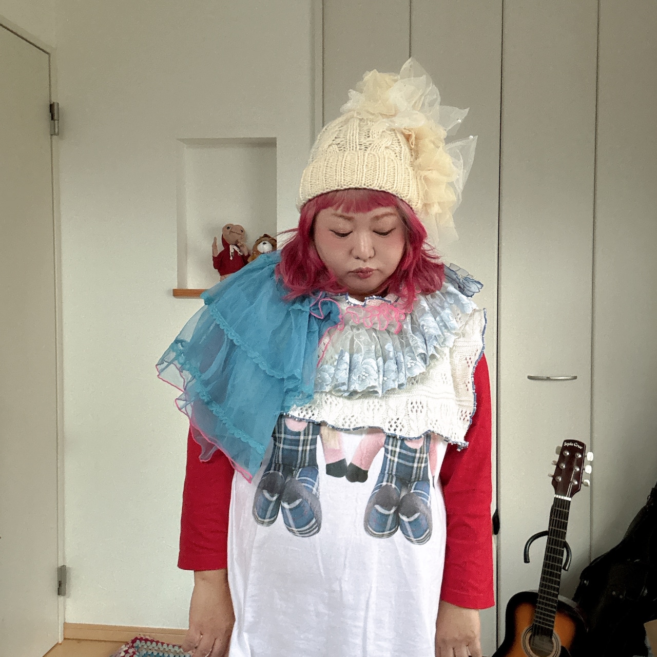 柔らかいホワイトニット帽に