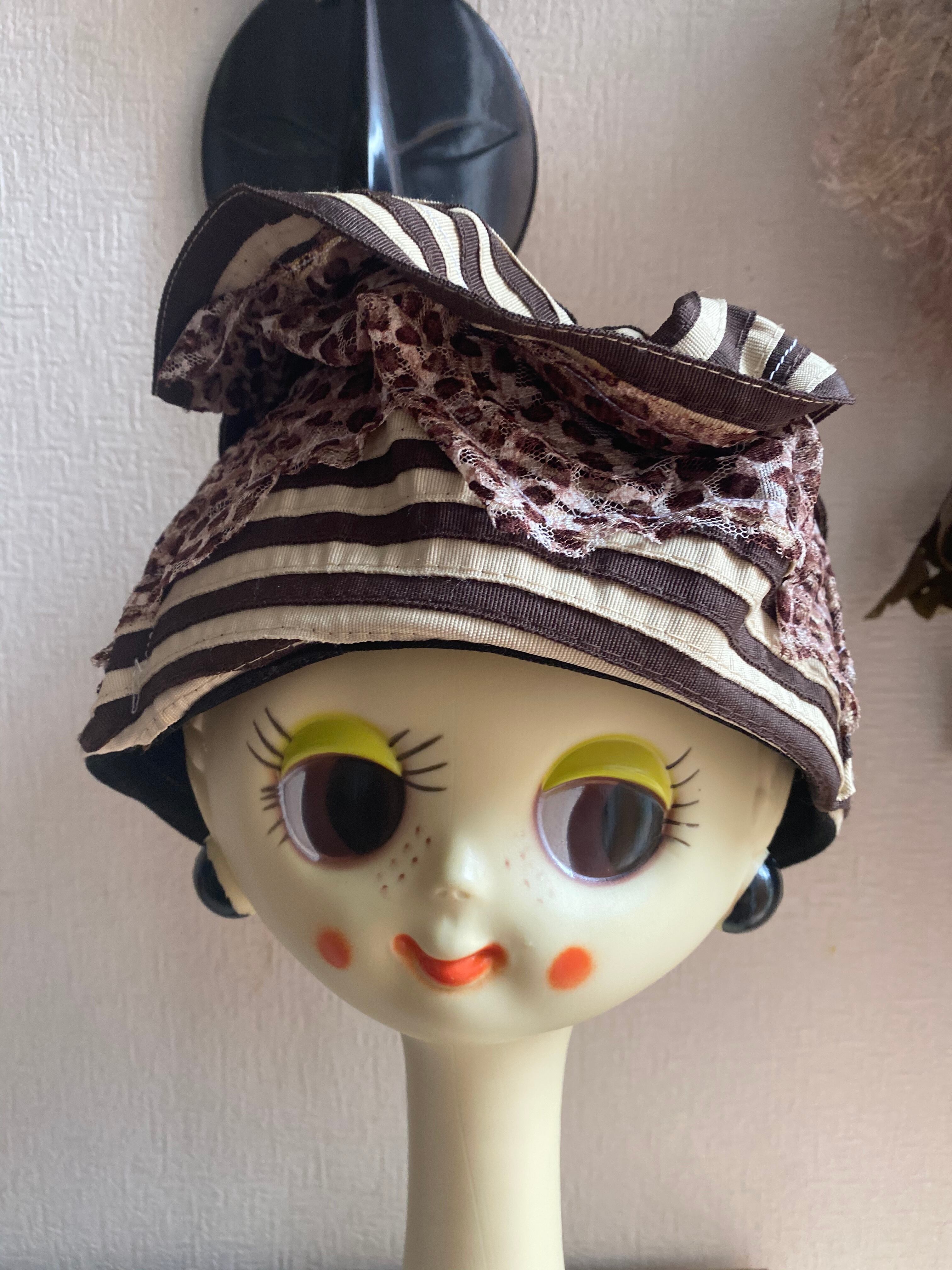 豹柄ボーダー変形トーク帽
