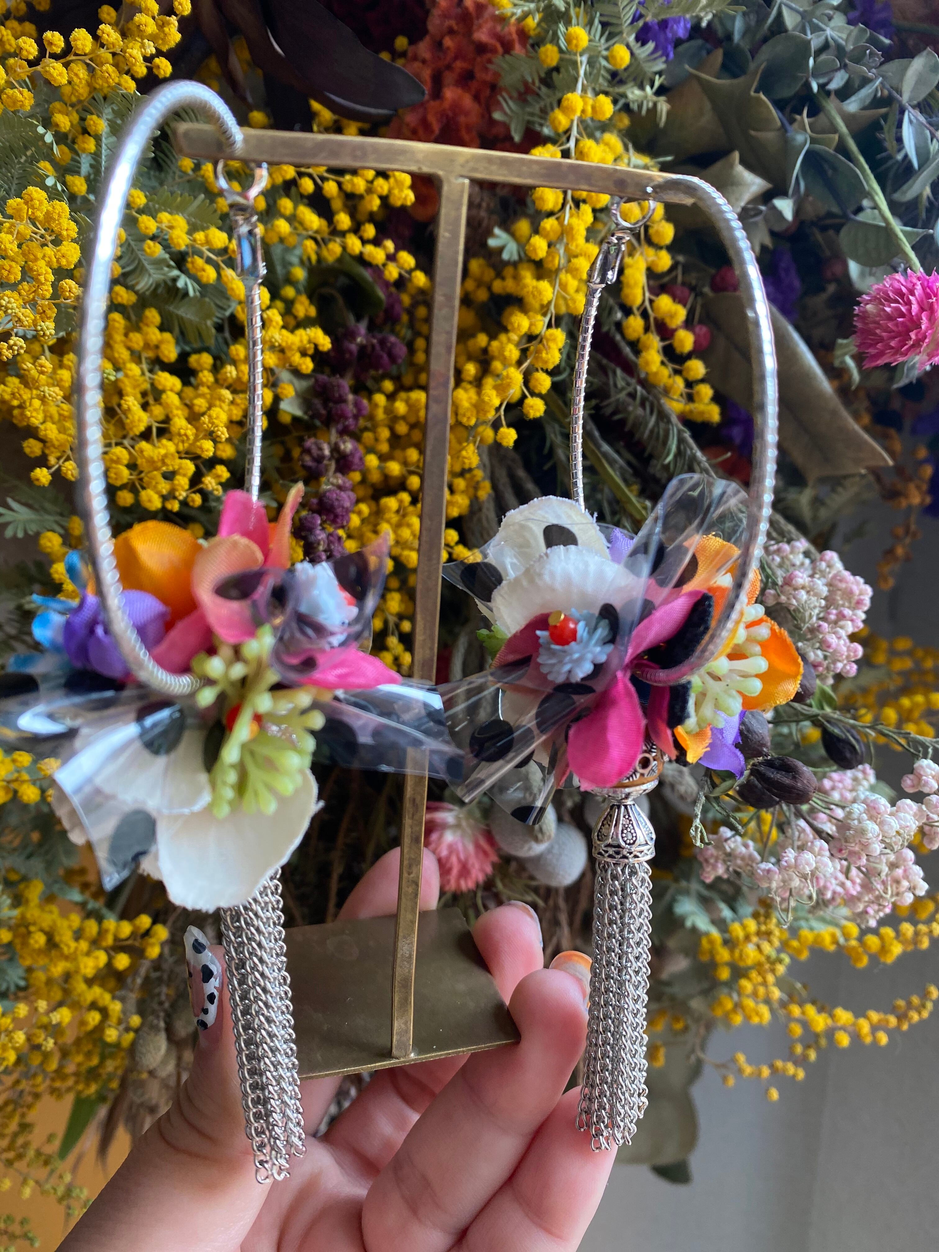 チェーンタッセルとお花を組み合わせた