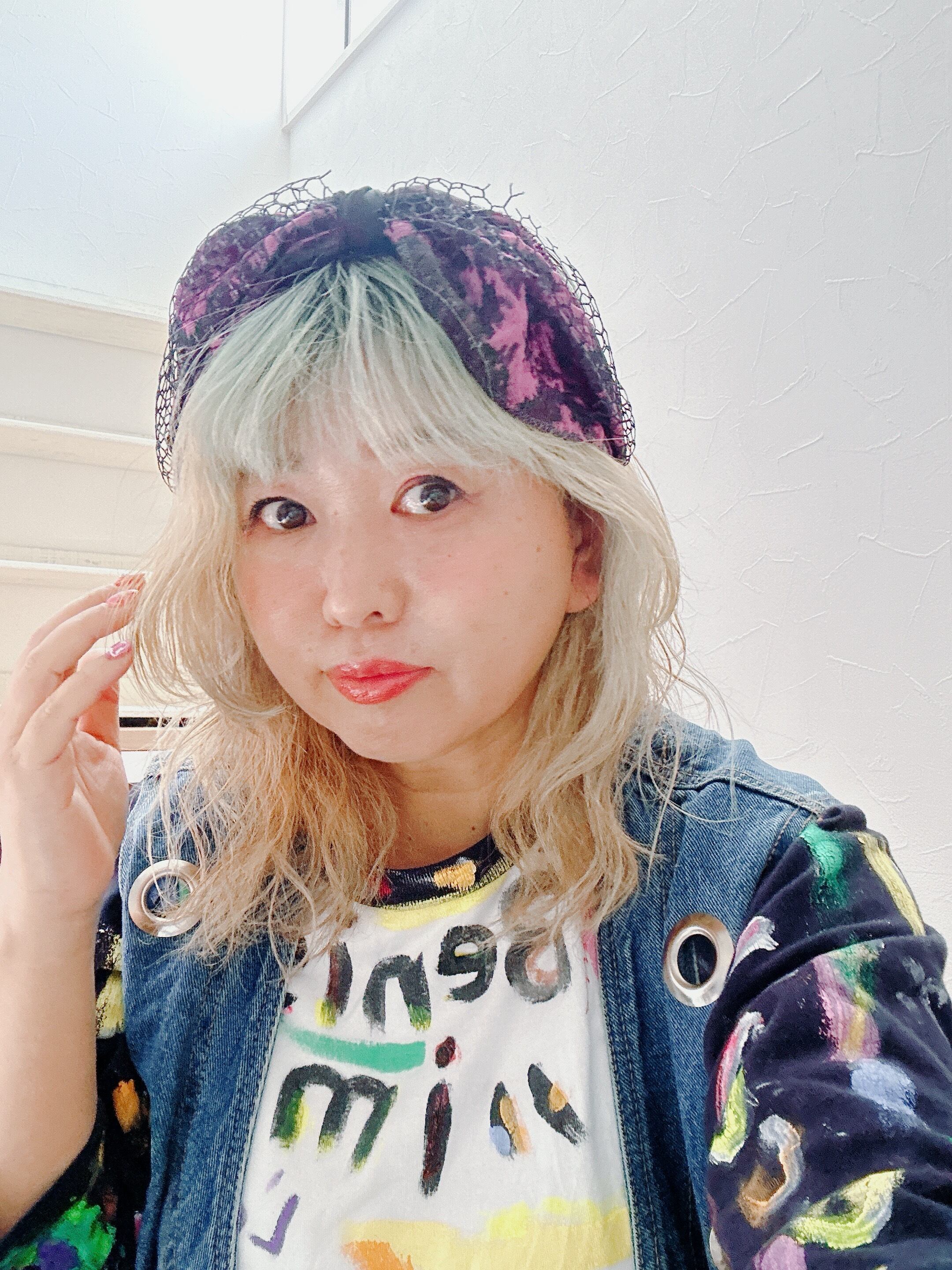 パープル黒ラメ模様✖️黒チュールカチューシャ
