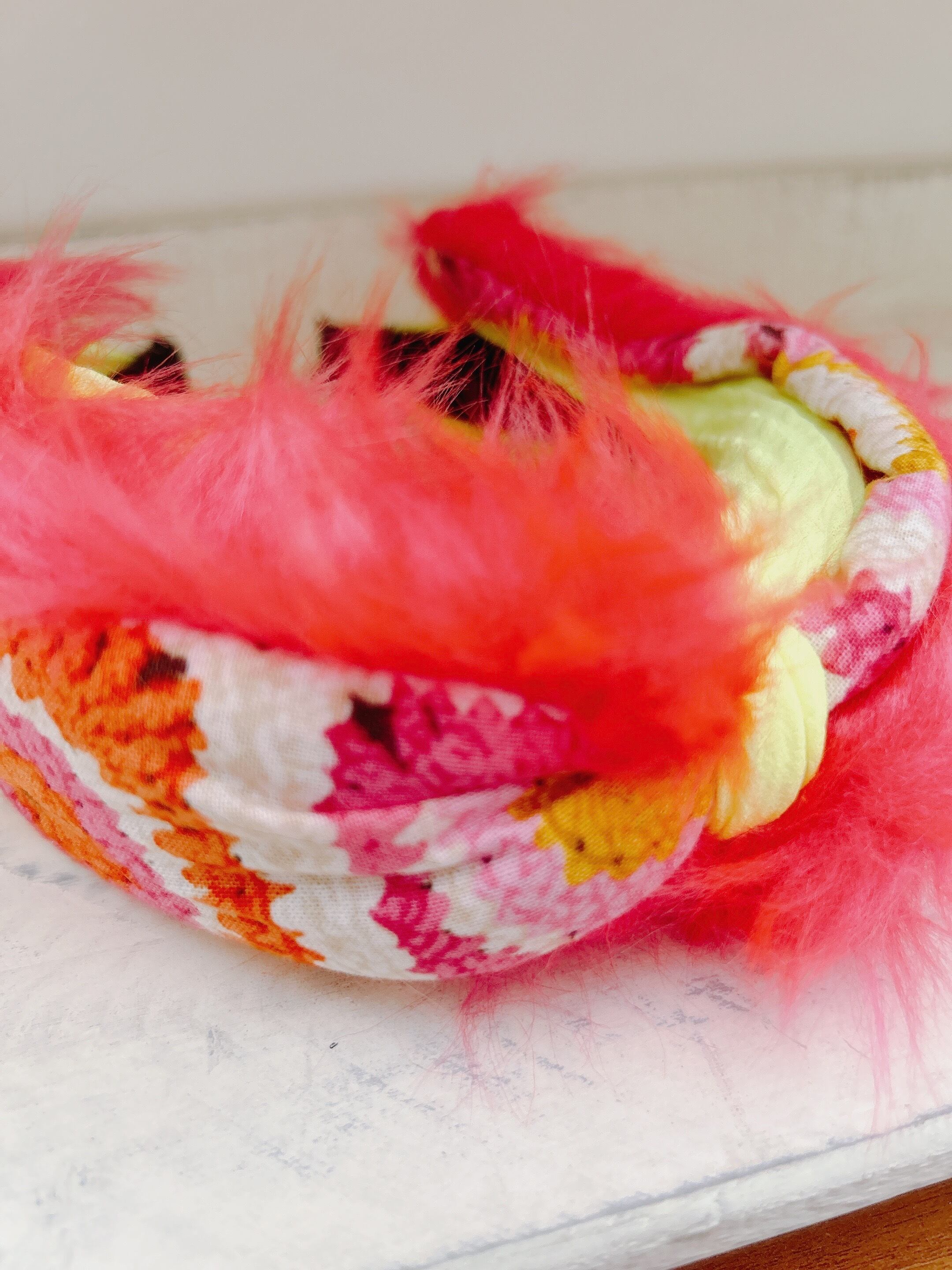 ピンクフェイクファー✖️モチーフ生地カチューシャ