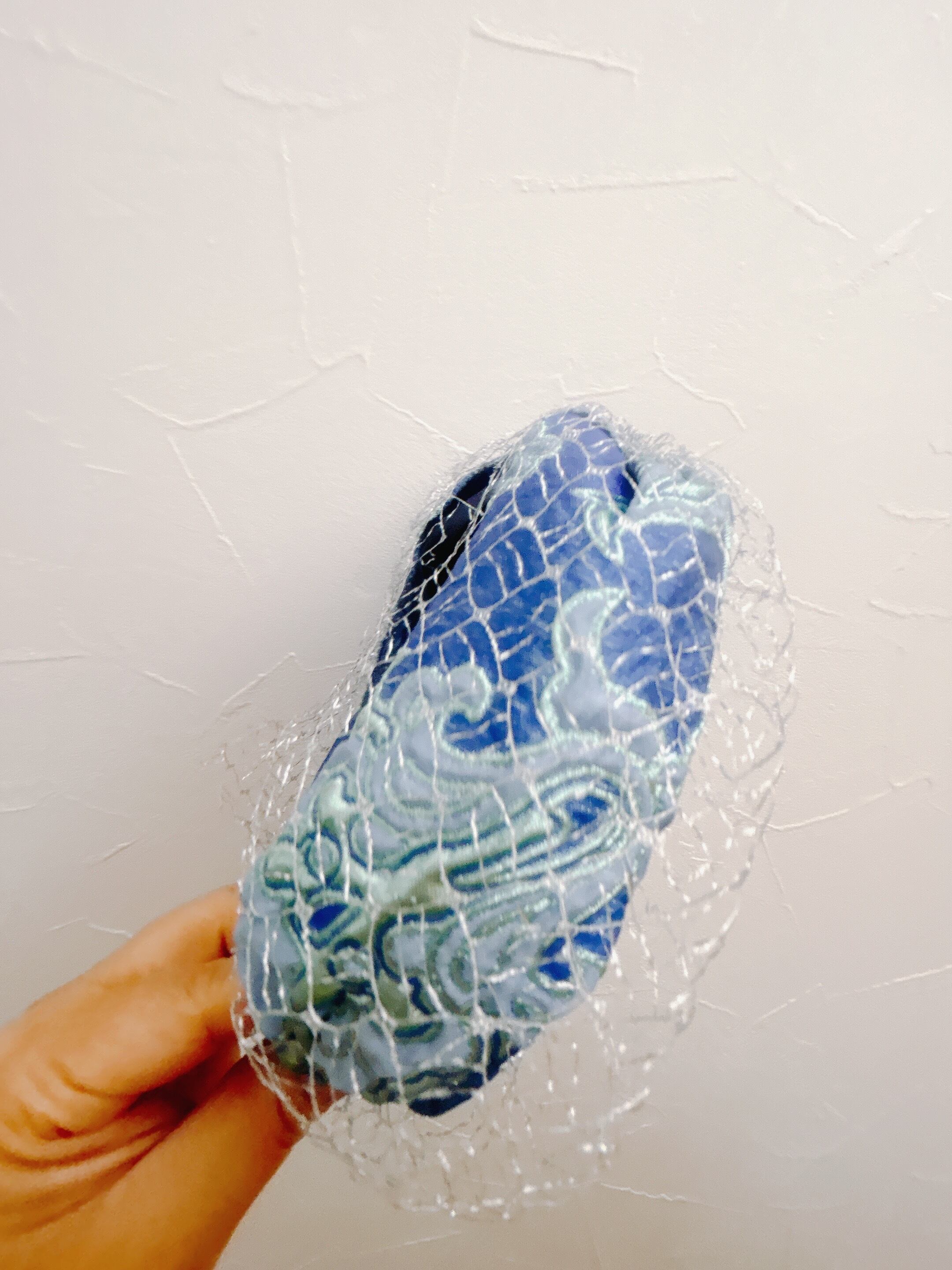 ブルー✖️シルバーチュールメッシュカチューシャ