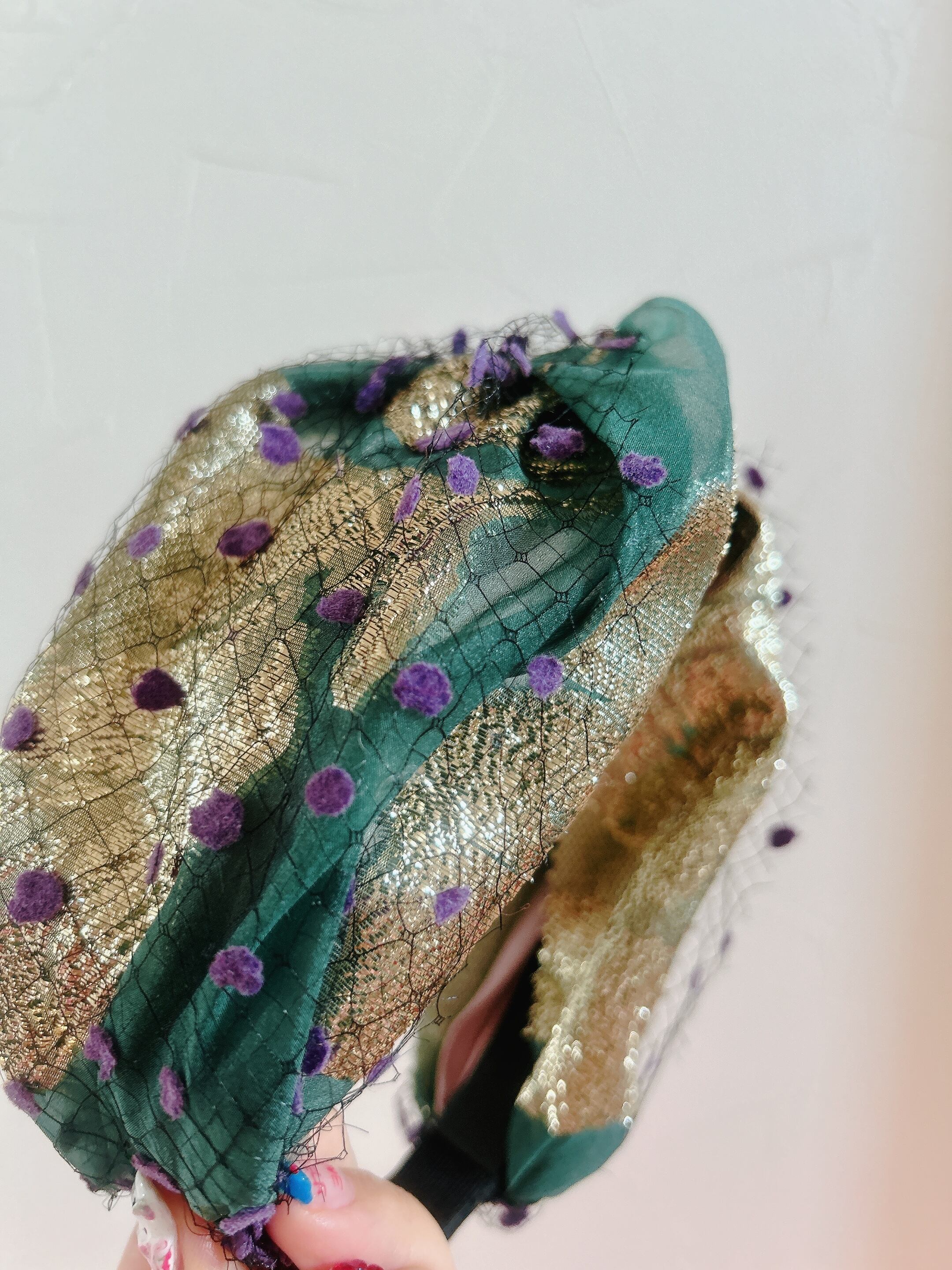モスグリーン✖️GOLDパープルドットカチューシャ