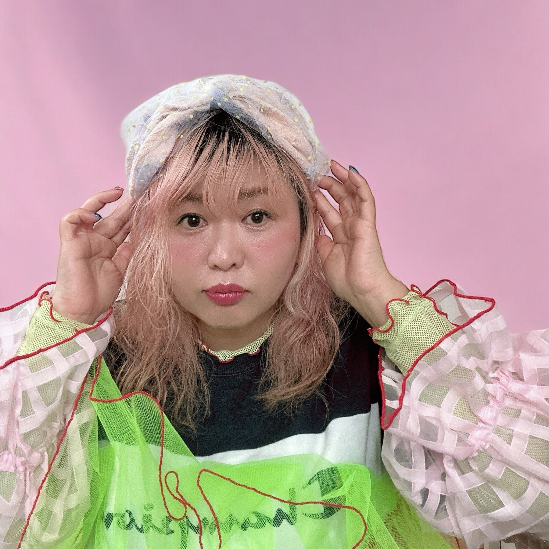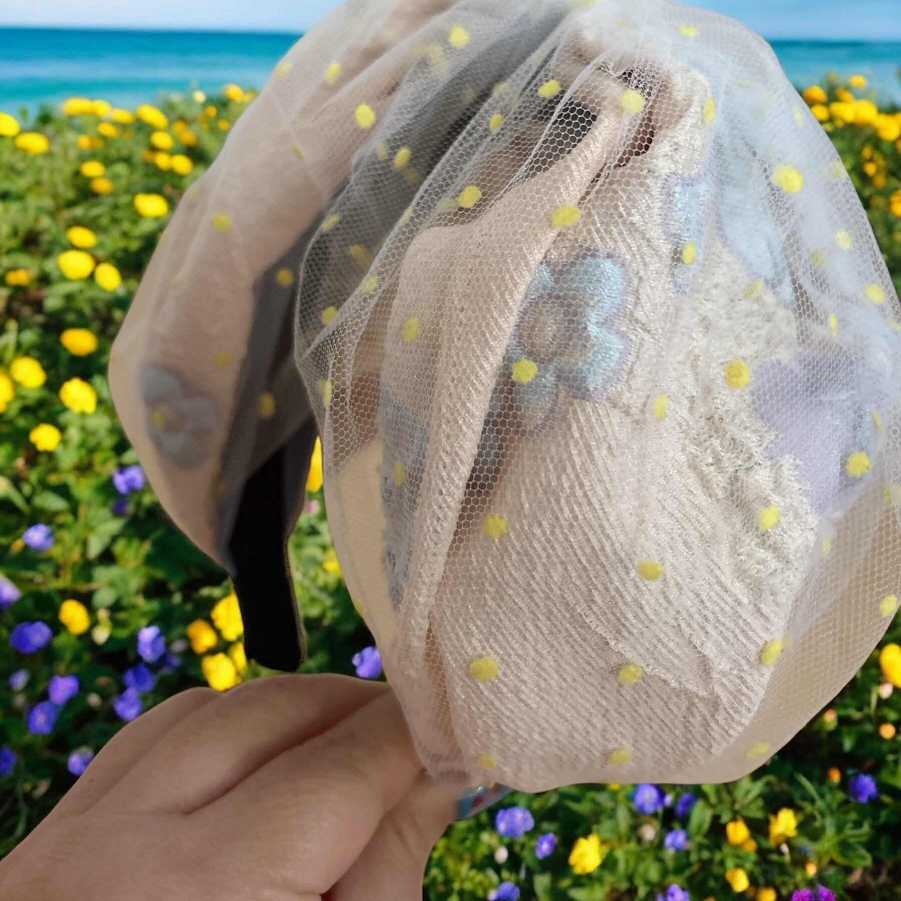 生地のお色はpink地にブルーのフラワープリントにイエロードットチュールが、とてもかわいいです。