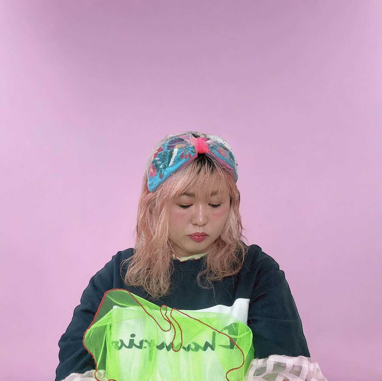 ブルー刺繍✖️オレンジドットチュールカチューシャ