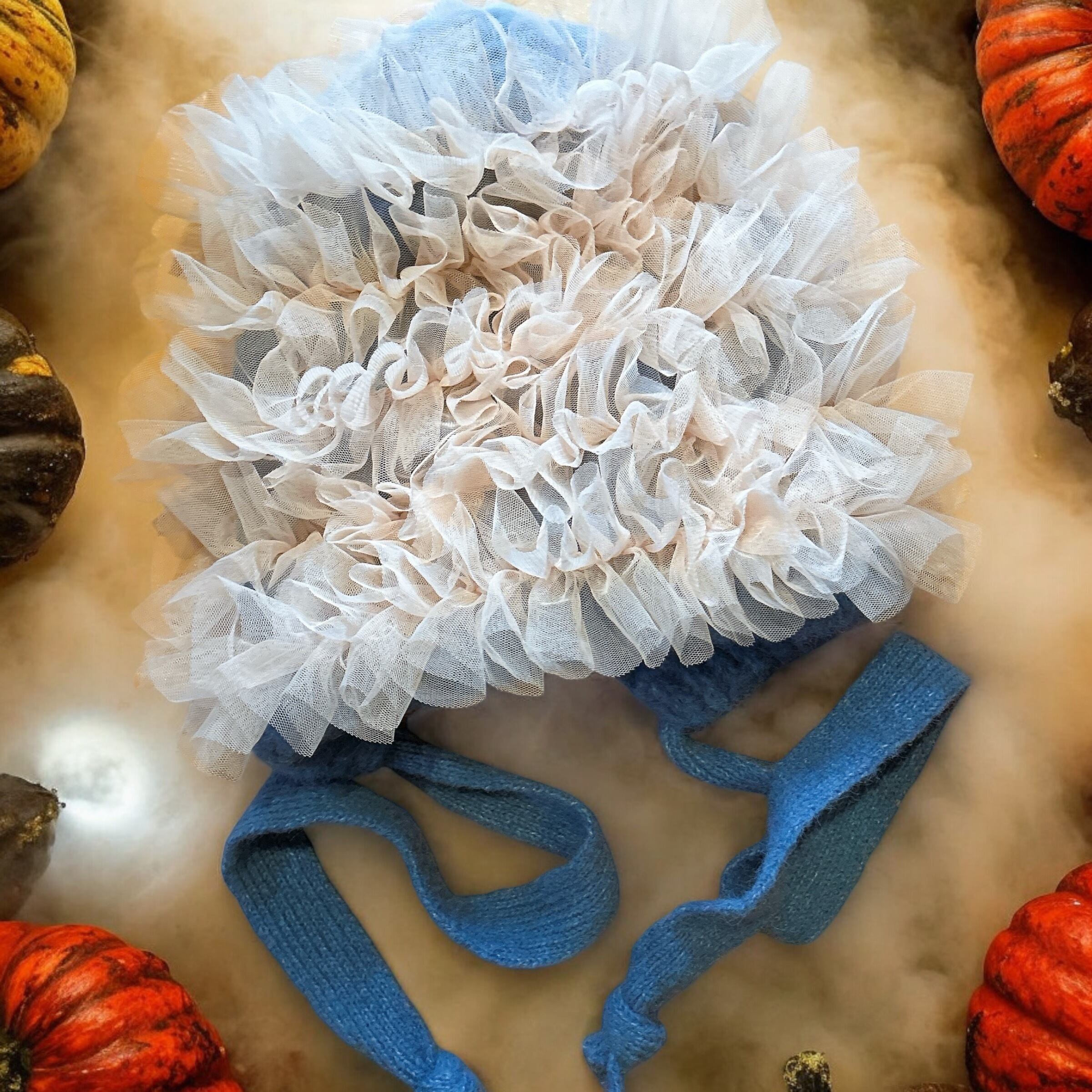 ①ブルーチュールニット帽¥16500
