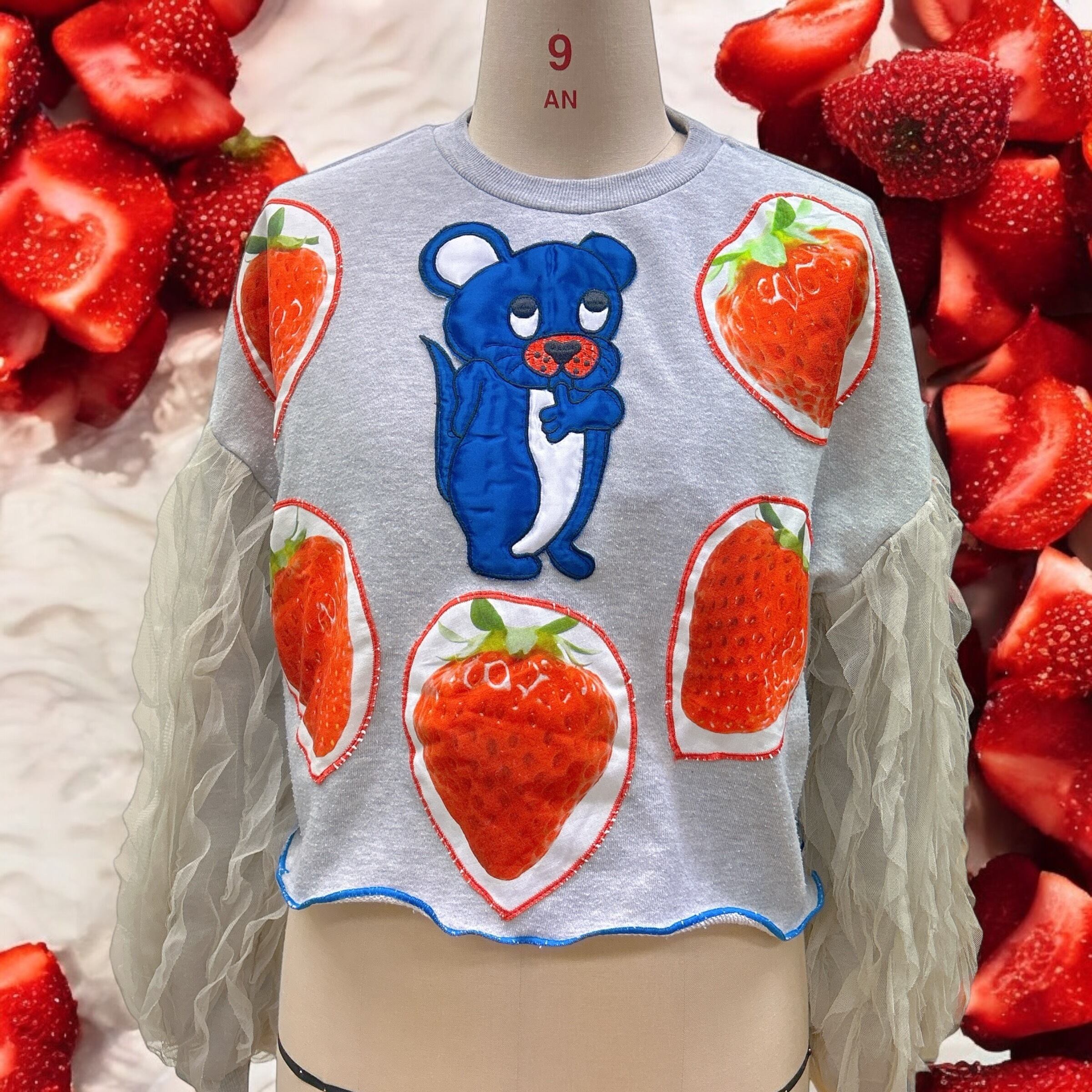 ネズミちゃんとイチゴちゃんのリメイクスウェット